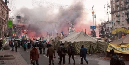 Накануне бойцы "Беркута" окружили протестующих со стороны Институтской улицы и Европейской площади. Начался штурм. Чтобы защититься, активисты поджигали шины. Через некоторое время им удалось образовать сплошную полосу огня, которая мешала пройти правоохранителям.