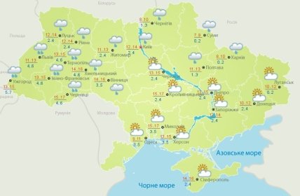 - в Киеве - дождь, гроза, ночью +5...+7°, днем +15...+17°;