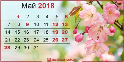 В мае 2018 года в Украине снова будут "длинные" выходные. При этом рабочие смены в предпраздничные дни - 5 мая (перенос с 30 апреля) и 8 мая - сократят на час.