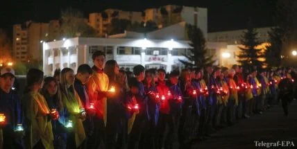 В городе-призраке Припяти сегодня, 26 апреля, ночью загорелись свечи. В полночь на центральной площади Припяти собрались бывшие жители города и работники зоны отчуждения.