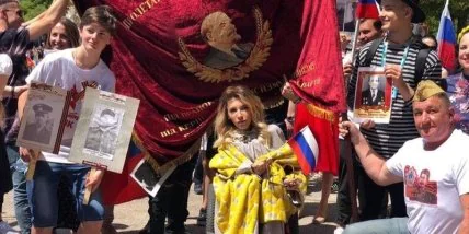 Отмечается, что участники акции, кроме портретов якобы своих родственников, принимавших участие во Второй мировой войне, несли также флаги РФ, Украины, Беларуси и Грузии.