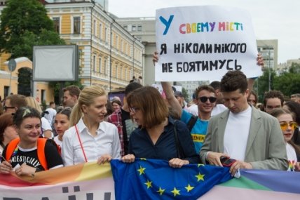 На Марше равенства были замечены Еврокомиссар Ребекка Хармс, а также народные депутаты Сергей Лещенко и Светлана Залищук с плакатами.
