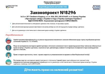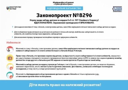 В то же время, в Минюсте отметили, что сбалансировали права обоих родителей. То есть, право выехать ненадолго за пределы Украины с малышом также получит тот из родителей, который не проживает с ребенком. Однако — только в случае, когда он является добросовестным плательщиком алиментов, — подчеркнули в министерстве.