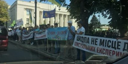 У здания Верховной рады проходит акция в поддержку традиционных семей, активисты также требуют "прекратить анти-семейную и гендерную пропаганду в школах".