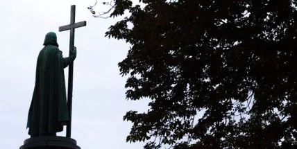 У памятника князю Владимиру на Владимирской горке в центре Киева, где в пятницу пройдет молебен по случаю 1030-летия крещения Руси, по состоянию на 13:00 продолжают собираться верующие.