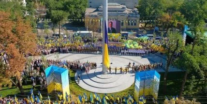 Украинцы  торжественно и оригинально отметили День государственного флага