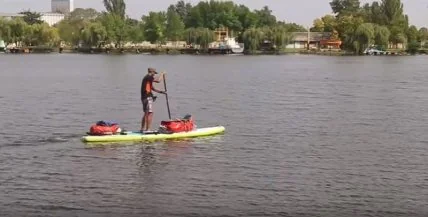 Спортсмен Антон Бондаренко установил рекорд Украины, проплыв из Киева в Одессу по Днепру и Черному морю на сапборде - доске, которая управляется одиночным веслом.