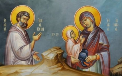 Внезапно ей явился ангел Господень и сказал: "Ты зачнешь и родишь Дочь, благословенную, превыше всех. Через Нее получат благословение Божие и все земные народы. Через Нее будет дано всем людям Спасение. Имя Ей будет Мария". В День Рождения Марии Иоаким принес Богу дары и жертвы.
