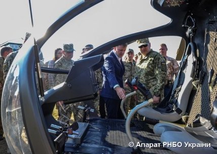 "Эти беспилотные комплексы созданы украинскими оружейниками в сотрудничестве с нашими иностранными партнерами", - подчеркнул Турчинов. Кроме того, были продемонстрированы летно-технические характеристики украинских легких многоцелевых вертолетов "Скаут" и АК1-3. Секретарь СНБО отметил, что эти вертолеты способны обеспечивать разведку и быстрое сообщение в войсках, выполнять задачи по охране границы, а также с комплексом современного вооружения обеспечивать выполнение боевых задач, поражая цели как днем, так и ночью, в частности, работая в беспилотном режиме.
