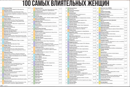 Согласно рейтингу журнала "Фокус" топ-100 влиятельных женщин Украины возглавила лидер "Батькивщины" Юлия Тимошенко, супруга президента Украины на третьем месте.