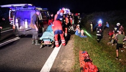 "Семерым раненым, в том числе двум детям и беременной женщине, оказали помощь на месте, а затем их доставили в больницу для дальнейшей диагностики. 72 пассажира украинского автобуса были доставлены в школу в городе Прошувки, где ждали другой автобус", - говорится в сообщении.