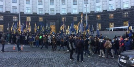 Активисты "Нацкорпуса" и ветераны АТО требуют под Кабмином создания Министерства ветеранов.