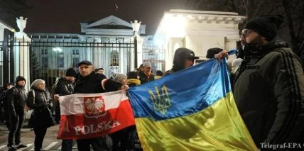 Около 200 человек в понедельник приняли участие в акции протеста под посольством РФ в Варшаве по поводу захвата российской стороной в воскресенье трех украинских судов с экипажами и ранения нескольких украинских моряков.
