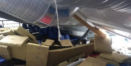 Напомним, 1 декабря в 11 часов 33 минуты в городе Вишневое Киевской области обрушилась крыша на площади 200 кв.м) над спортзалом ДЮСШ "Фаворит". Только за 1,5 мин. до этого тренер успела вывести из здания 30 детей. Погибших и пострадавших нет.