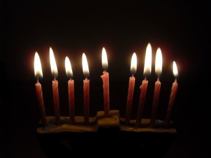 В течение 8 дней евреи зажигают свечи в ханукии, ежедневно добавляя по одной: в первый день зажигают одну свечу, во второй – две и так далее. Свечи устанавливают справа налево, а зажигают слева направо. Зажженные перед заходом солнца свечи должны гореть не меньше 30 минут после наступления темноты.