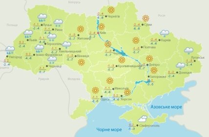 • Днепр – ясно, ночью 0...-2, днем 0 ... +3