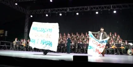 В пятницу, 7 декабря, двое польских активистов прервали концерт ансамбля песни и пляски Российской армии имени Александрова, который проходил в Быдгоще.
