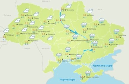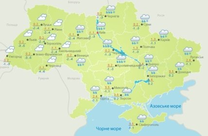 Температура ночью 0-6° мороза, в Карпатах до 9° мороза, 12 декабря на юге и востоке - около 0°; днем в Украине от 3° мороза до 3° тепла, в южной части и на Донбассе - до 6° тепла. В Киеве и области 12 декабря синоптики прогнозируют мокрый снег, местами сильный. 13 декабря пройдет слабый мокрый снег. Температура ночью - 1-6° мороза, днем около 0°.