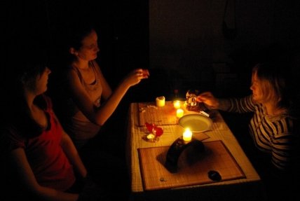 Этот метод странный и жуткий. Девушка накрывает в пустой комнате стол скатертью, заставляет его посудой, кроме ножа и вилки, и говорит: