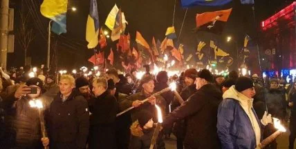 В свою очередь, в 18.00 из парка им.Шевченко стартовало более многочисленное факельное шествие по случаю дня рождения С.Бандеры, организованное Всеукраинским объединением "Свобода" и рядом других националистических партий и организацией.
