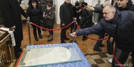 Как сообщалось, Вселенский патриарх Варфоломей 5 января подписал Томос об автокефалии Православной церкви Украины. В воскресенье, 6 января, в Патриаршем храме Святого Георгия на Фанаре состоялось вручение Томоса и божественная литургия, которую совместно отправили Вселенский патриарх Варфоломей и предстоятель Православной церкви Украины, митрополит Киевский и всея Украины Епифаний. В Украине Томос впервые продемонстрировали на праздничной Божественной литургии 7 января в Софии Киевской.