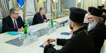 "Его Святейшество двигался вперед в вопросе предоставления автокефалии украинской церкви, потому что народ Украины обратился с просьбой об этом. И вы также были первым гражданином Украины, кто взял на себя, я бы сказал риск, но в то же время и большую ответственность", - сказал митрополит.