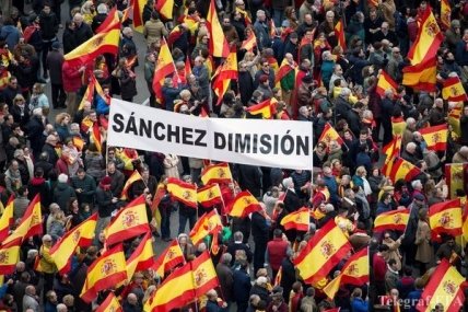 Протестующие считают политику Санчеса предательством национальных интересов и выступают против независимости Каталонии.