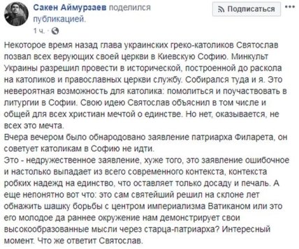 Также, патриарх не исключил, что это мероприятие может для провокационных целей использовать Россия, чтобы навредить украинскому народу и призвал Святослава изменить планы о проведении паломничества и совершения литургии в соборе Святой Софии.