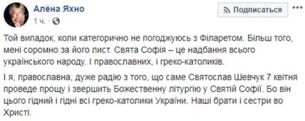 Филарет призвал главу УГКЦ отказаться от проведения литургии в Софийском соборе