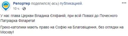На странице Патриарха Филарета в Facebook сообщается, что запланированное событие может вызвать противостояние между православными и греко-католиками и нарушить межконфессиональный диалог в Украине.