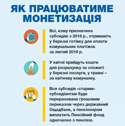 Пенсионеры получат начисленную субсидию вместе с пенсией – на свои пенсионные карты или наличными через почтовые отделения или курьером. Время получения – с 4 по 25 марта. Остальные украинцы с 12 марта будут получать первую субсидию денежным переводом через "Ощадбанк".