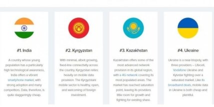 Украина попала в перечень стран с самым дешевым мобильным интернетом, заняв четвертое место после Индии, Кыргызстана и Казахстана.