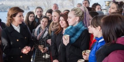 Отмечается, что во время рабочего визита в Запорожскую область Марина Порошенко вместе со студентами Хортицой национальной учебно-реабилитационной академии приняла участие в акции Green Works "В тандеме с природой - в тандеме с собой", в ходе которой были высажены розы на Аллее мира и добра на Святой Хортице.