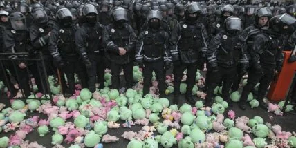 Возле АП митингующие забросали правоохранителей игрушечными розовыми свиньями