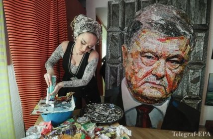 Украинская художница создала портрет Порошенко из оберток и снарядов