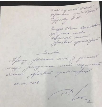 Заместитель председателя Херсонской облгосадминистрации Евгений Рищук написал заявление об увольнении. В субботу, 6 апреля, такое же заявление написал глава Херсонской ОГА Андрей Гордеев. Активисты утверждают, что они могут быть причастны к убийству Екатерины Гандзюк.