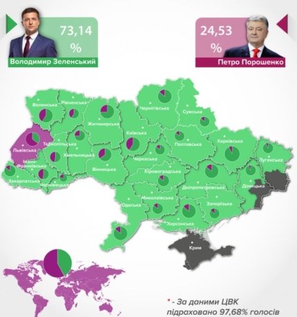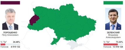 Им стал Владимир Зеленский с результатом в 73,22%. Действующий Президент Украины Петр Порошенко получил 24,46%.