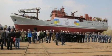 Министр обороны Украины Степан Полторак называет победой спуск на воду во вторник среднего разведывательного корабля, изготовленного на заводе "Кузня на Рыбальском" в Киеве.