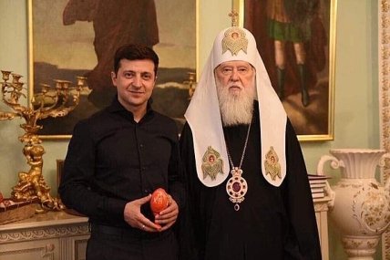 Владимир Зеленский провел встречу с патриархом Филаретом. Филарет поздравил новоизбранного президента с победой и призвал использовать полученную должность "для содействия добру и преодоления зла". В конце встречи Филарет вручил Зеленскому памятный подарок.