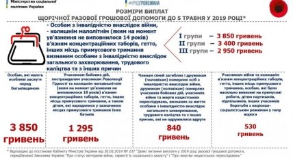 Министерство социальной политики установило размеры выплат в 2019 году разовой денежной помощи украинцам до 5 мая.