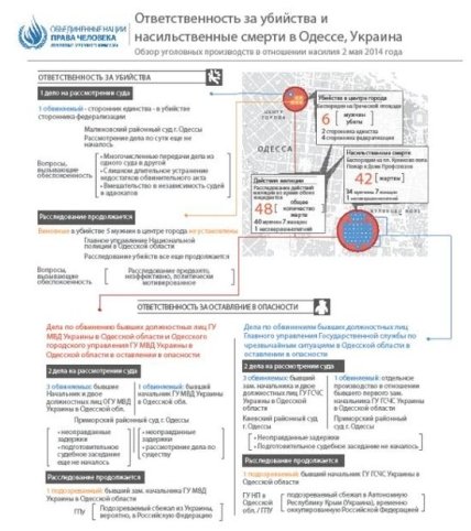 Данные мониторинга были опубликованы в справке "Ответственность за убийства и насильственные смерти 2 мая 2014 года в Одессе" и выложены на сайте представительства ООН в Украине. Согласно тексту обнародованной информационной справки, наблюдение за процессом расследований совершенных преступлений 2 мая в Одессе миссия ООН вела с первого года после трагических событий.