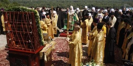 Напомним, что вчера патриарх Кирилл совершил молебен в Киеве накануне Дня крещения Руси. Около 300 человек приняли участие в праздничном молебне на Владимирской горке. На торжестве присутствовали: министр иностранных дел Константин Грищенко, министр юстиции Александр Лавринович, другие официальные лица и около 100 представителей духовенства.