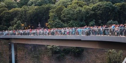Кстати "флешмоб" с прыжками на открытии моста начал сам городской голова столицы Виталий Кличко. Таким образом он решил продемонстрировать журналистам, что стекло является прочным, а мост – безопасным.