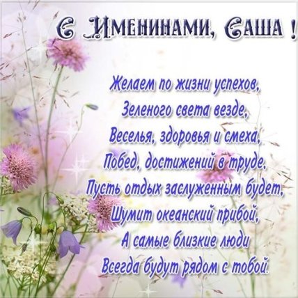 От всей души и чистого сердца поздравляю тебя, дорогой Сашенька. Пусть путь твой приведет тебя к успеху и благополучию, пусть каждая дорогая в жизни будет усыпана удачей и везением, желаю быть искренне счастливым человеком и крепко любимым мужчиной.