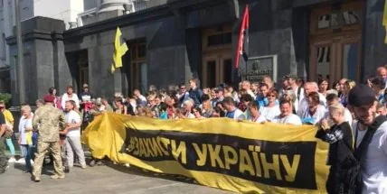 Под зданием Офиса президента в Киеве около сотни людей участвуют в акции против капитуляции.