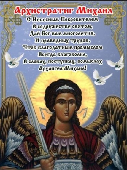 Поздравляю тебя, дорогой Михаил, с твоим светлым и радостным праздником. Желаю тебе нескончаемого оптимизма и успеха, прекрасного самочувствия и доброго здоровья, замечательных друзей и великолепных идей, бодрости духа и верной любви в жизни.