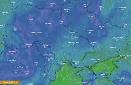 Температура в западных, большинстве северных и Винницкой областях ночью 8-13°, днем 20-25°. На остальной территории ночью - 10-15°, на побережье морей - до 18°, днем- 23-28°, на юге до - 30°.