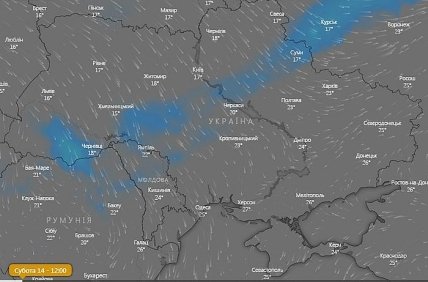 В субботу ночью, утром в западных и северных областях, днем в центральных, Сумской и Харьковской областях местами небольшой дождь, на остальной территории без осадков.