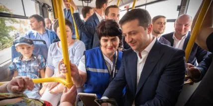 Зеленский в рамках рабочего визита в Днепр перед инспекцией отремонтированного моста в полном троллейбусе проехался по нему на другой берег.