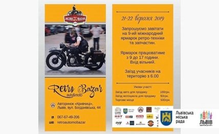 Во Львове в течение 21-22 сентября будет проходить IX Ярмарка ретротехники и запчастей, которая соберет поклонников старинных автомобилей, мотоциклов и велосипедов.